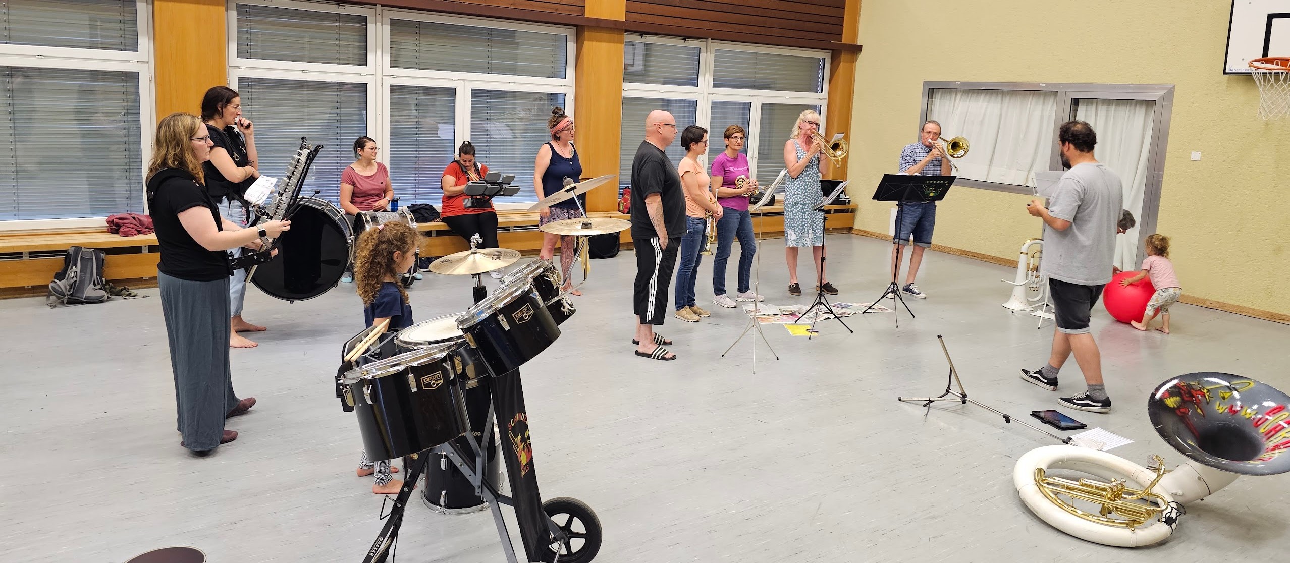 Wir trafen uns um 19:00 Uhr in der Turnhalle im Scalottas zur ersten gemeinsamen Probe. Der Schwerpunkt lag an diesem Abend vorwiegen bei den Blässern. Auch die Rhytmus Truppe konnte beim einen oder anderen Teil schon etwas mit machen und sich wieder einleben. Vorwiegend ging es aber gestern einmal darum sich zu treffen und zu sehen wer denn aktuell wo steht und was konnte jeder einzelne zu Hause schon alleine üben.